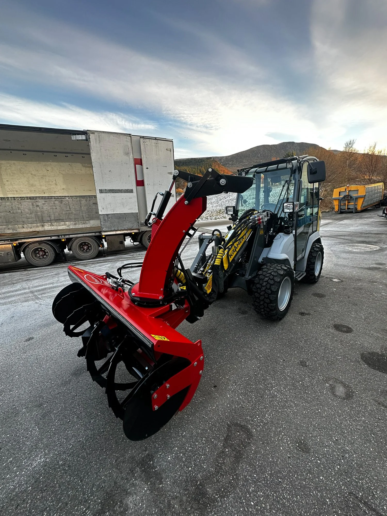 2 tonn 2023 mod hjullastar med pallegaflar, grusskuff, snøskuff, feieaggregat, plog, snøfres og sandstrøar.